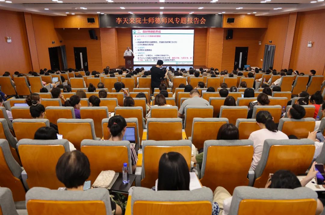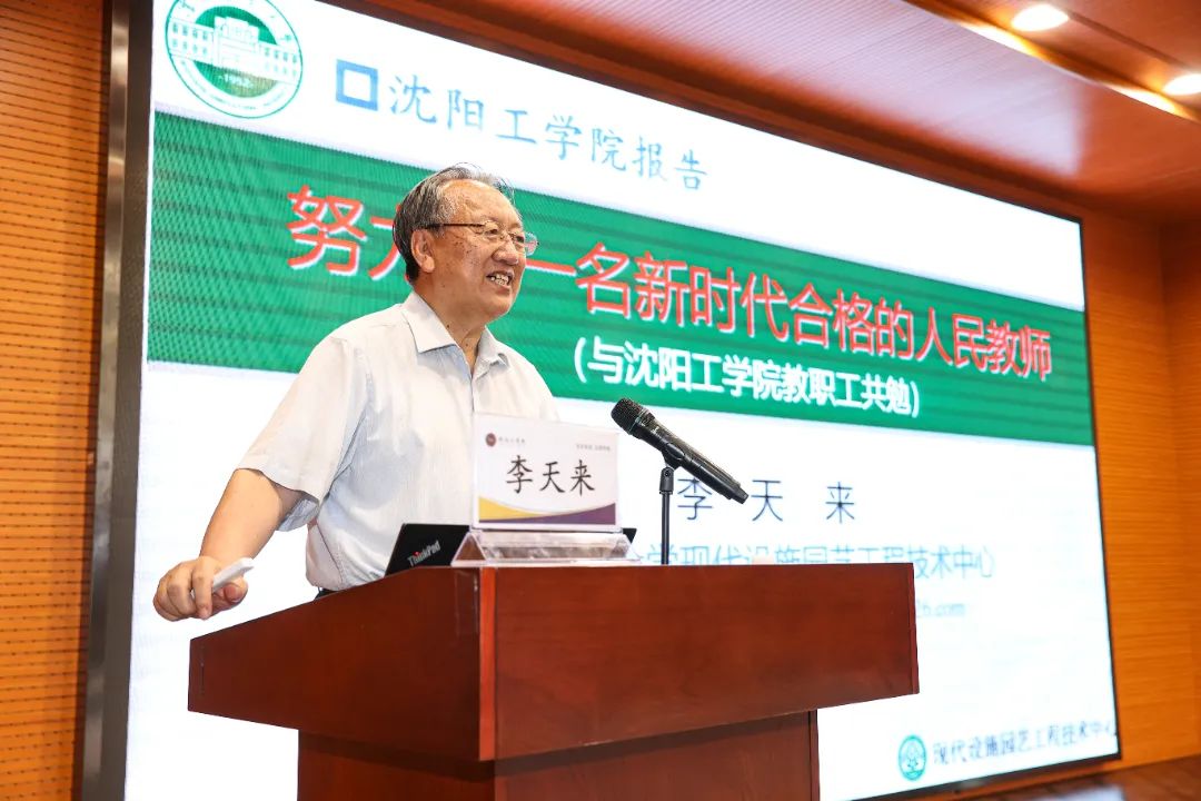 报告中,李天来院士以《努力做一名新时代合格的人民教师》为题,结合学习成长经历和丰富的工作经验,高屋建瓴阐释了合格教师养成的重要性、良好师德的养成、精湛业务素质的养成、良好文化修养的养成,并介绍了教育部首批全国高校黄大年式教师团队——沈阳农业大学设施蔬菜栽培与生理教师团队的建设与成果。他指出,教育大计,教师为本。师德师风直接影响教师队伍整体素质,关乎培养什么人、怎样培养人、为谁培养人这个教育的根本问题,关乎立德树人根本任务的落实,以及培养社会主义建设者和接班人的教育使命和职责。新时代合格教师既要精通专业知识、做好“经师”,又要涵养德行、成为“人师”。要严格自我约束、规范职业行为、强化道德自觉,努力做到敬重学问、严于律己、为人师表,努力成为有理想信念、有道德情操、有扎实学识、有仁爱之心的好老师。