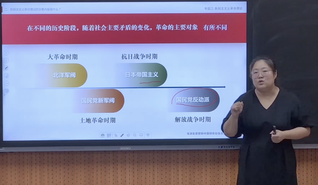 比赛现场,刘玲玲讲授了《习近平新时代中国特色社会主义思想概论》中的“全过程人民民主好在哪里”,逻辑清晰,案例丰富;王璐讲授了《毛泽东思想和中国特色社会主义理论体系概论》中的“新民主主义革命总路线”,内容充实,理论深厚;王赛讲授了《马克思主义基本原理》中的“中国式现代化的哲学意蕴”,语言精练,见解独到。三位老师均展示出扎实的理论功底和丰富的教学经验,全面展现了新时代思政课教师的精神风貌。