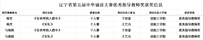 近日,由辽宁省教育厅主办、辽宁财贸学院承办的辽宁省第五届中华诵读大赛落下帷幕。我校参赛选手在历时4个月的比赛中,斩获一等奖2项、二等奖5项、三等奖21项,指导教师韩芳、马海旭获评“优秀指导教师”,学校荣获“优秀组织奖”。