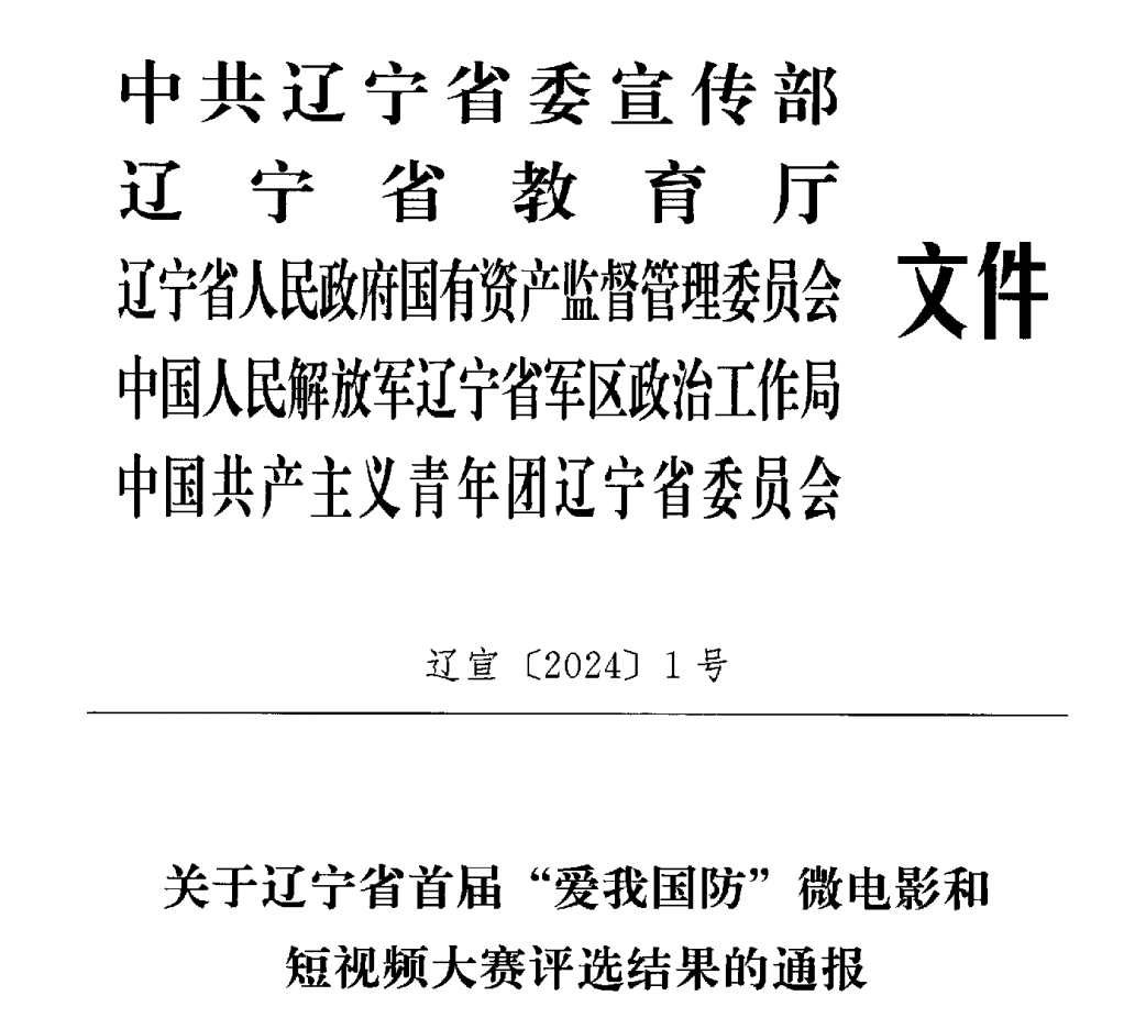 近日,由省委宣传部、省教育厅、省国资委、省军区政治工作局、团省委联合举办的辽宁省首届“爱我国防”微电影和短视频大赛落下帷幕,我校荣获优秀组织奖。