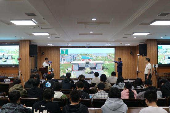 郭宝宇现场展示南方测绘元宇宙实训室,并在报告中深入阐述测绘地理信息元宇宙技术的概念及其应用,详细介绍南方测绘集团在虚拟仿真教学方面的探索与创新成果,帮助学生体会元宇宙技术在教学中的应用效果,有效拓宽学生科技视野,显著提升对相关知识的探索兴趣。