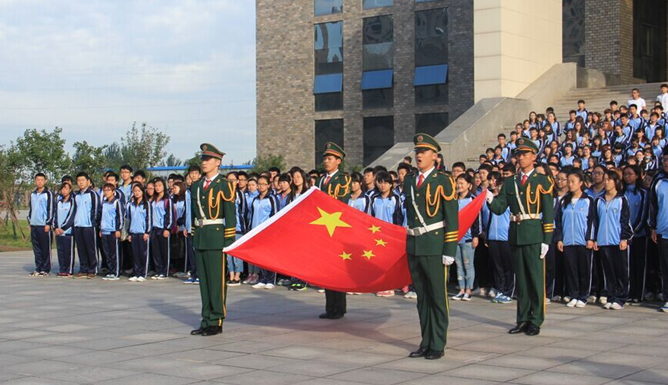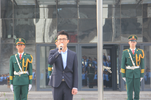 图为:国旗班首次亮相升旗仪式