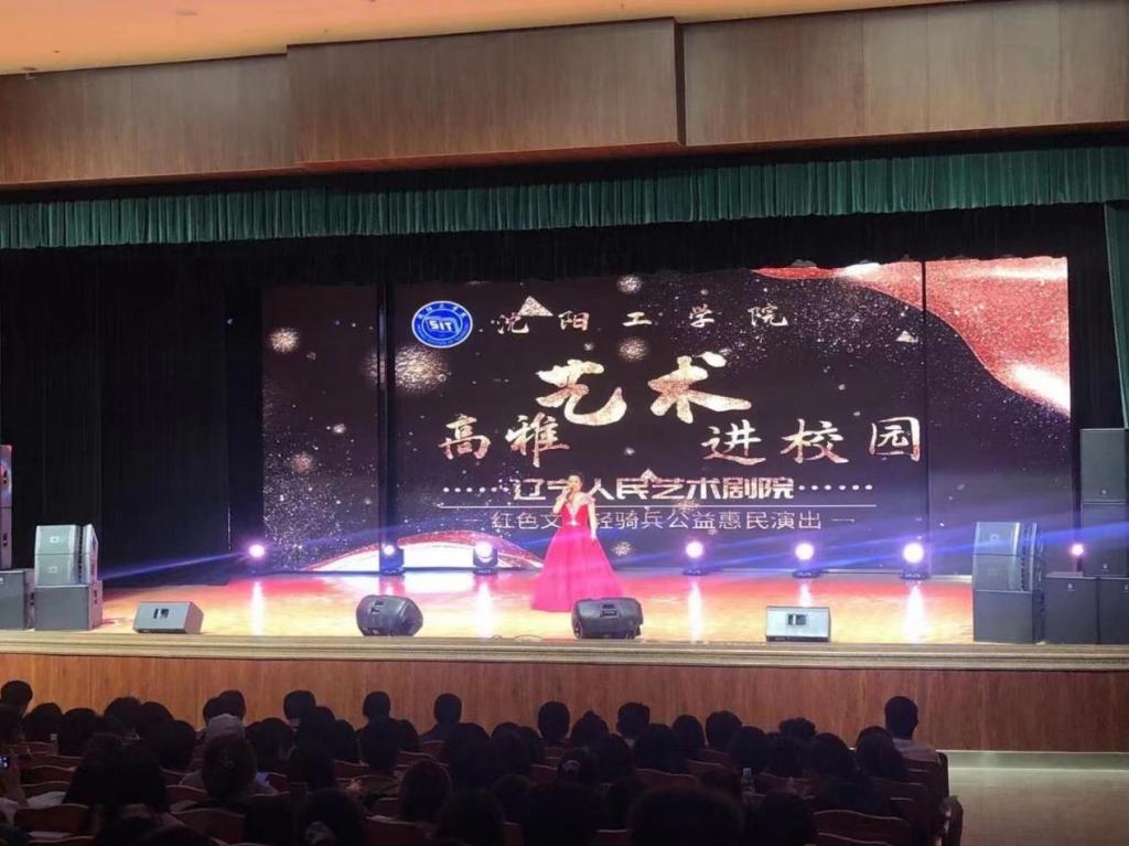 4月20日,我校学生工作部联合辽宁人民艺术剧院在博学馆礼堂举办“红色文艺轻骑兵”高雅艺术进校园活动。演出以一首《唱支山歌给党听》作为开场,道出了人民群众对党的崇敬,表演者们通过演唱《我爱你中国》《红色娘子军+万泉河水+东方红》《党旗更鲜艳》等一系列主题歌曲歌颂伟大祖国,弘扬爱国主义精神。