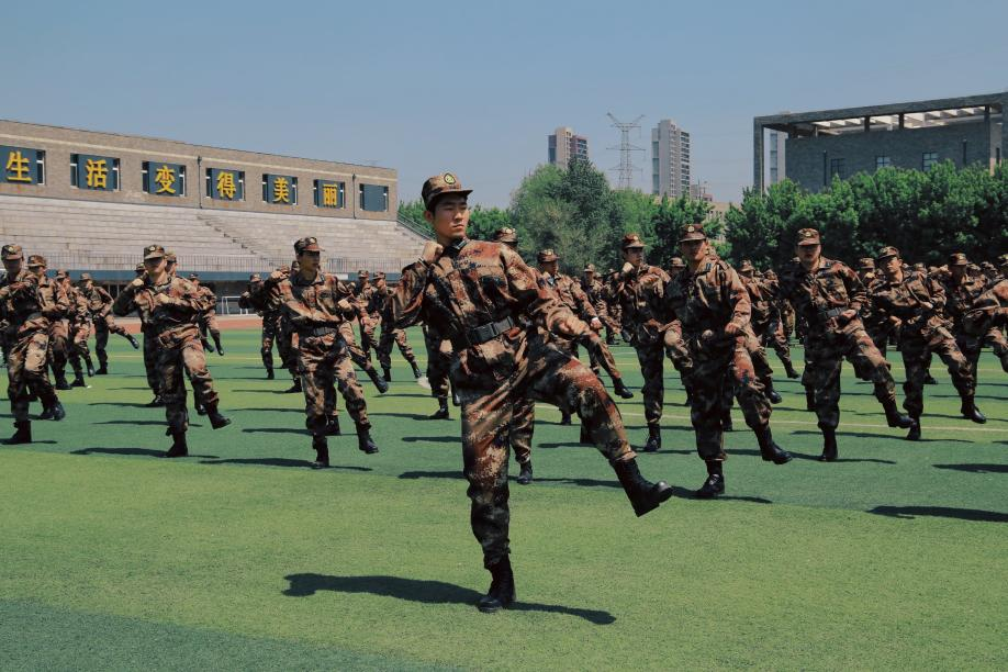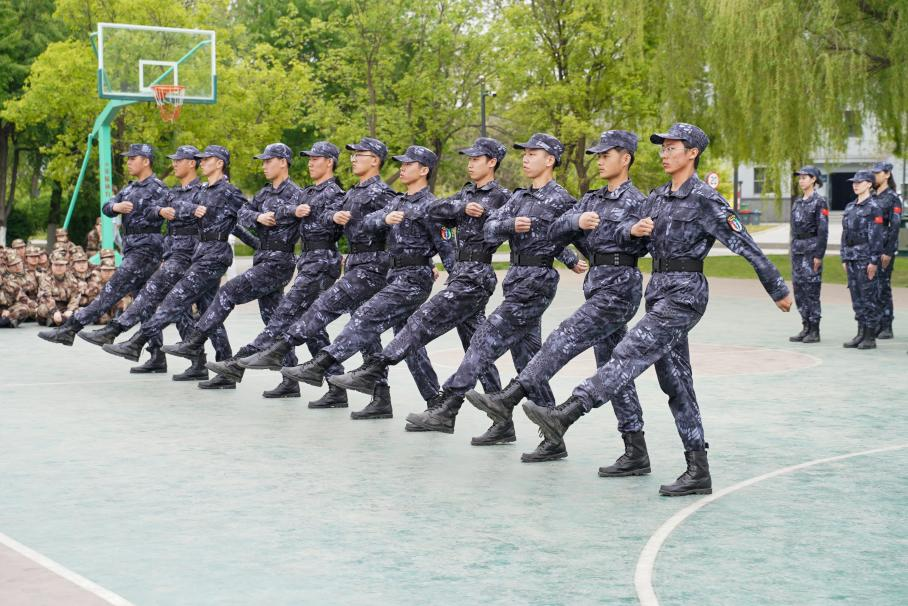立正、跨立、摘帽、齐步走……同学们开始了一天的军训生活。嘹亮的口号声在操场上此起彼伏,激起阵阵回响。由多个学院联合组织的队列动作演练成为校园里最夺目的风景线。在教官的指挥下,同学们整齐划一地完成了稍息与立正、停止间转法、跨立与立正、蹲下与起立、敬礼与礼毕、齐步走行进、跑步走行进等一系列动作。他们队列整齐,动作规范,步伐坚毅,以昂扬的精神面貌,展现了优秀的训练成果,赢得了阵阵掌声。