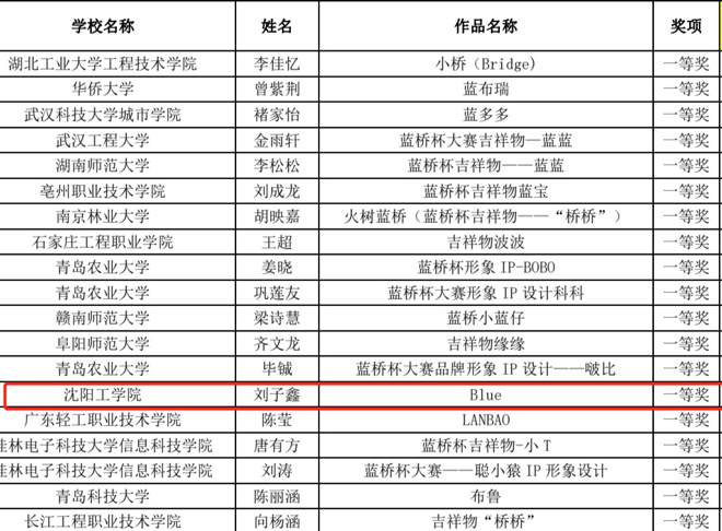 近日,第十二届“蓝桥杯”全国高校视觉艺术设计选拔赛公布竞赛结果,我校艺术与传媒学院视觉传达设计专业学生在平面设计类(吉祥物)比赛中取得一等奖1项、二等奖4项、三等奖2项的佳绩,我校荣获“优胜学校”奖项。