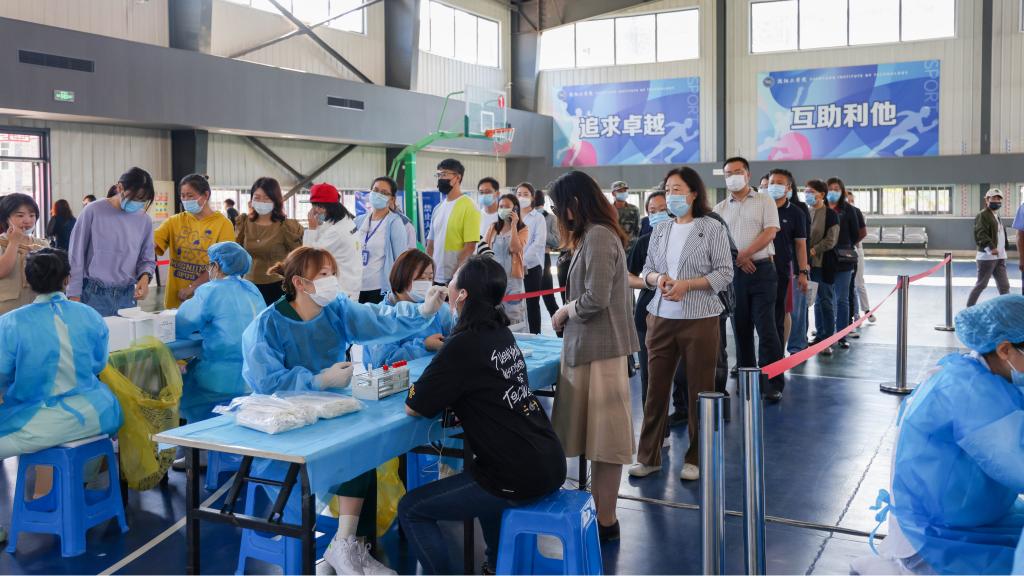 为保障此次核酸检测工作高效、有序开展,相关工作人员早早来到了学校篮排馆做好各项准备工作。在工作人员的引导下,受检人员全程佩戴口罩,以部门为单位,分时段、分批次有序进入采集点,经过身份核验、登记信息后进行采样,采样结束后迅速离场。
