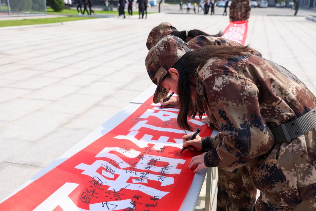 在雷锋铜像前,原船钉班班长焦庭喆与2021级船钉班代表许博超进行了船钉班旗帜交接。随后,2021级工业设计专业学生张荣梦代表全体2021级船钉班同学庄严承诺:“缅怀船钉烈士、践行船钉精神,做对国家和社会有用的人才!”2021级船钉班全体同学面向旗帜庄严宣誓。