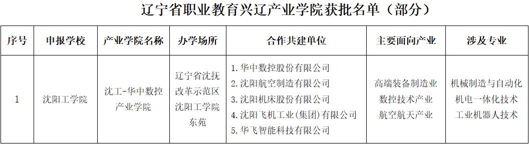 近日,辽宁省教育厅办公室印发《关于开展辽宁省职业教育兴辽产业学院申报工作的通知》,我校沈工-华中数控产业学院获批为辽宁省职业教育兴辽产业学院。