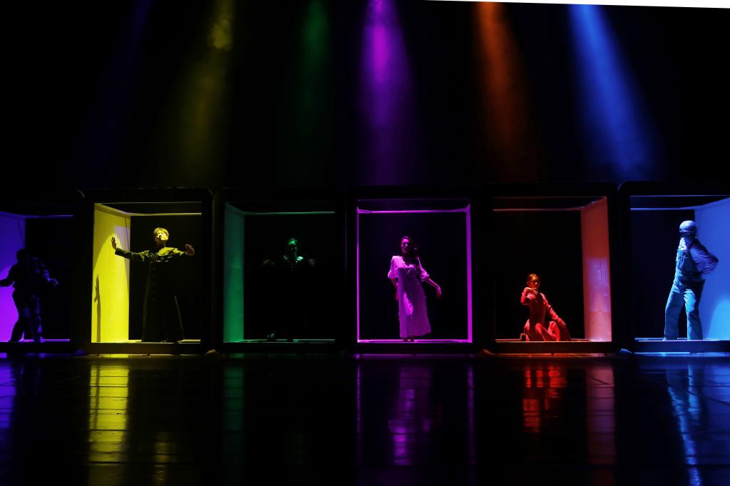 2021沈阳艺术节由中共沈阳市委宣传部、沈阳市文化旅游和广播电视局主办。我校排演的《谁偷走了门的时间》讲述了一个发生在与现实世界平行空间的科幻故事,以先锋姿态重新结构时空,在梦呓般的现实中寻找更加纯粹的心灵。表演专业的学生们在表演专业教师、本剧导演李龙的带领下,以大胆的想象、精彩的演绎生动刻画了人性、生命以及“门里”“门外”的缥缈和虚无。该剧由表演专业独立创作完成。表演专业全体教师参与创作指导,影视表演、导演创作、音乐剧表演三个工作室的大一至大三年级共计21名学生参加演出制作,展现了该专业在编、导、演、制方面的综合创作实力,为本土的戏剧发展贡献了沈工力量。