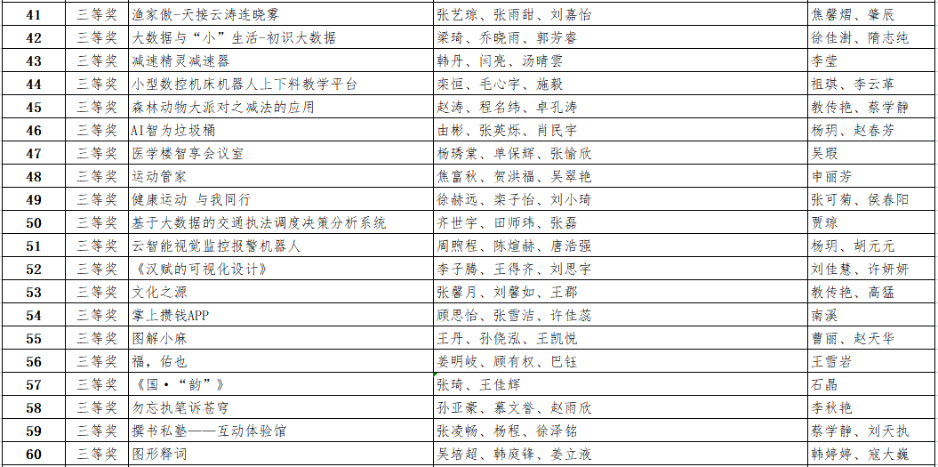 我校共有79项参赛作品获奖,其中一等奖14项,二等奖24项,三等奖41项。本次竞赛有54所高校参赛,经校内选拔、学校推荐、省级专家评审等环节,共评出1764项获奖作品。