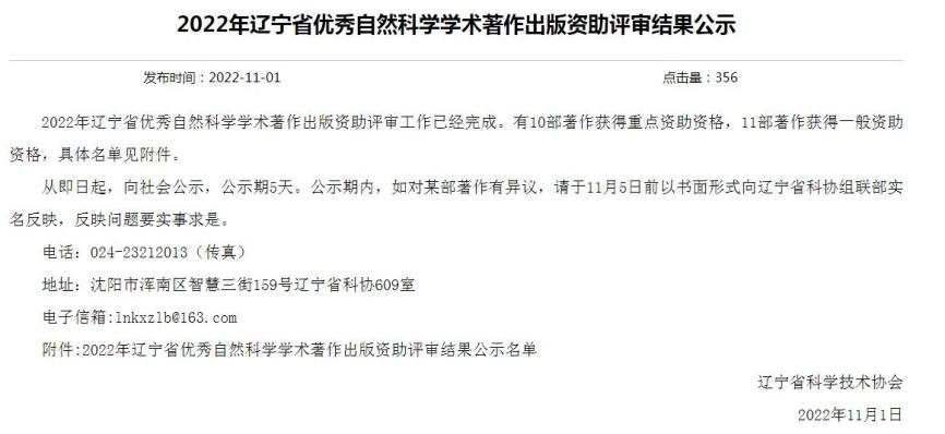 2022年辽宁省优秀自然科学学术著作出版资助项目共21项,其中,10部著作获得重点资助,11部著作获得一般资助。