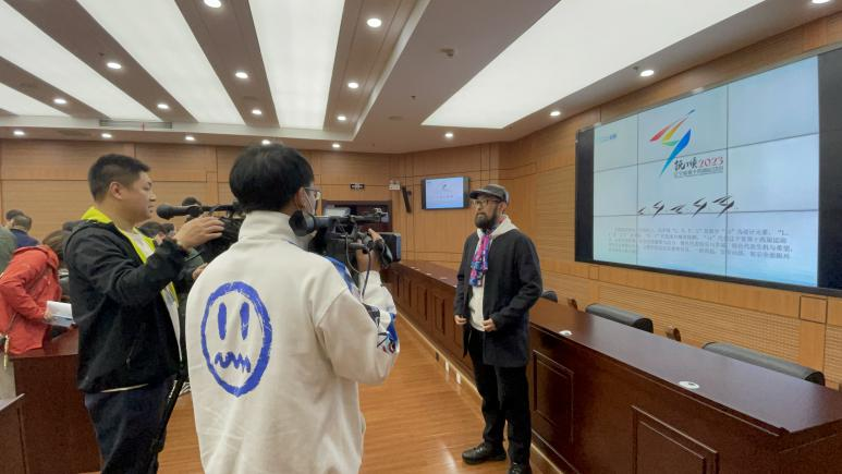蔡福全老师毕业于鲁迅美术学院,曾获中国优秀包装设计师、中国百名杰出青年设计人才、中国设计事业先锋人物等荣誉称号。本次会徽的设计历经100多次的修改完善,使用渐变色的形式以及剪纸的风格,塑造了一个极具运动感的人物形象。